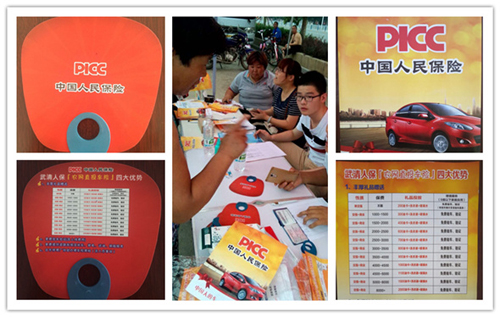 为确保文化下乡演出活动的顺利开展,每次演出前,武清支公司的农网团队均多次下乡开展前期宣传,向农民朋友发放活动宣传单页。为了得到更好的宣传效果,武清支公司还创意制作了宣传扇,将此次文化下乡汇演活动的信息印在扇子上,免费发放给农民朋友,在炎炎夏日中为他们送去清凉的同时,有效推广人保下乡文化汇演活动。