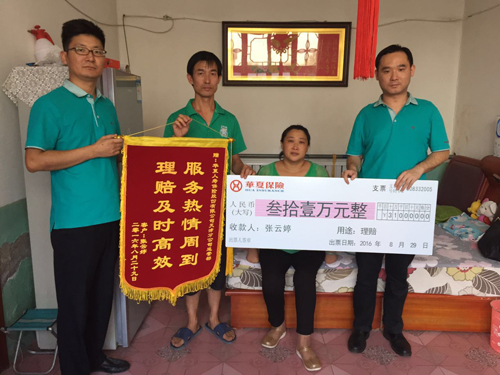 8月29日,在赔付现场,张女士将一面写着“理赔及时高效,服务热情周到”的锦旗送给华夏保险天津分公司理赔人员并感慨道:突发的变故给自己带来痛苦的同时更给家人造成了巨大的心里创伤,原本就不富裕的家庭也因此雪上加霜,感谢华夏保险以最短的时间为我们赔付了理赔款,不仅缓解了经济上的压力,更让我体会到服务的温暖。