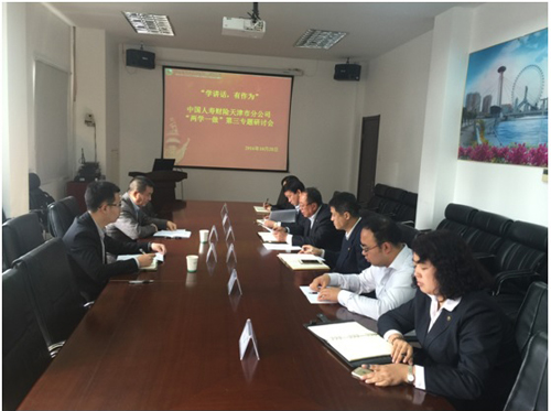 分公司党委书记、总经理黄智在会上提出:一是我们要带着“学而思”的圆梦先行者心态来学讲话;二是我们要带着“学而信”的政治责任感心态来学讲话;三是我们要带着“学而行”的担当有为心态来学讲话。天津国寿财险全体党员干部要以“两学一做”为抓手,不断增强政治定力,守好政治纪律和政治规矩,忠诚于党、忠诚于公司,努力为公司跨越式发展提供坚实有力的后盾。(天津国寿财险)