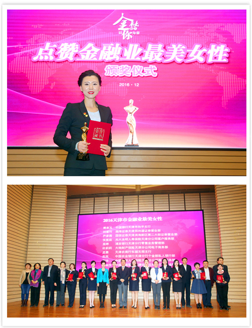 12月15日,点赞金融业最美女性颁奖仪式隆重举办,经过层层评选,共有三位保险业代表入选金融业“最美女性”十佳称号!其中我公司张紫茹获此殊荣!代表公司、代表行业展示了现代金融业女性自尊、自信、自立、自强的形象,并为光大永明在行业内的形象宣传产生了积极的影响。(光大永明人寿天津分公司)