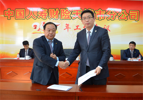 2月6日,中国人寿财险天津市分公司召开2017年工作会议。分公司党委、总经理室全体成员,各支公司、各业务单位、分公司本部各部门经理室全员参会。会议由分公司穆朝晖副总经理主持,传达了集团公司和总公司2017年工作会议重要讲话精神;黄总与各支公司、各业务单位签订了2017年绩效目标合同。