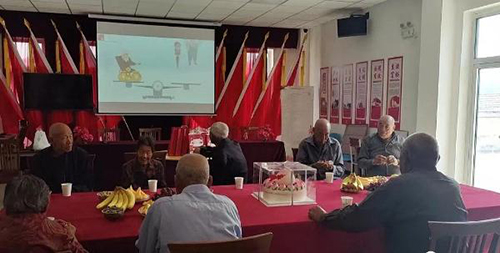 静海党支部为老人们带去了水果及蛋糕,大家一起唱起生日歌,吹蜡烛、切蛋糕,现场欢声笑语不断。听着来自众人的祝福,老人们脸上写满幸福的笑容。