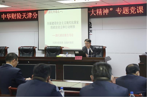 为积极响应上级公司号召,带领广大党员干部深入学习贯彻党的二十大精神,深刻领会其中的科学内涵、精神实质和实践要求,11月3日上午,中华财险天津分公司举办“学习党的二十大精神”专题党课,特邀原中共天津市委党校副校长、校委会委员、天津行政学院副院长赵晓呼亲临现场授课。分公司全体党员、非党员中层干部、各支部入党积极分子及发展对象共计50余人参加了学习。