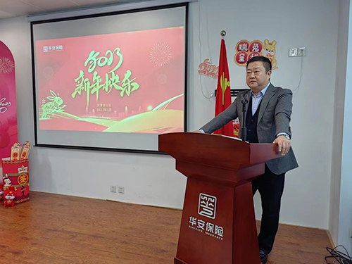 会上,天津分公司总经理室领导为全体员工及家人送上新年祝福。天津华安负责人翟志发表新年致辞,他表示,2023年为天津华安“转型升级”的一年,所有过往因保费的质、量产生的问题,均在2023年要改善并解决,增强员工主人翁意识,增加归属感。新的一年我们要打破传统的工作方式,围绕“谋事、担当、创新、动员”四个方面,提升全体干部员工的大局意识和工作标准,勇于争先、强化落实,常接地气、善聚人气、广聚才气。翟志勉励全体天津华安人精进不怠、锲而不舍,以全新的姿态走进2023,为实现分公司经营目标达成和高质量可持续发展而共同奋斗。