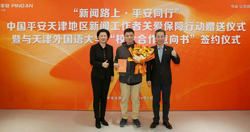 冬去春来,群芳竞放。2月24日,天津外国语大学、平安人寿天津分公司及中国平安驻津多家专业公司在平安大厦举行“新闻路上·平安同行”中国平安天津地区新闻工作者关爱保障行动赠送仪式暨与天津外国语大学“校企合作意向书”签约仪式。