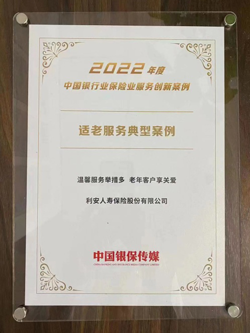正因为在保障老年人等重点人群方面推出的一系列温馨服务举措,公司报送的《温馨服务举措多,老年客户享关爱》案例荣获由中国银保传媒颁发的“2022年度中国银行业保险业服务创新案例-适老服务典型案例”奖项。