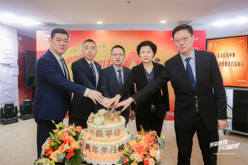 总经理室全体成员登台,一同切开精美的司庆蛋糕,与大家一起分享司庆喜悦,共同庆祝中国平安35岁生日快乐,携手展望光明与未来。