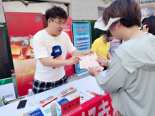 职场外,天津分公司于6月15日参加由和平区金融局主办的防范非法集资现场宣传活动。在和平路活动现场设置咨询台,天津分公司工作人员向社会公众发放宣传折页,并围绕非法集资的特点、表现形式、常见手段、社会危害等内容,认真讲解相关知识,以真实案例为切入点,引导社会公众坚决抵制高息诱惑,远离非法集资。