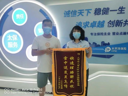 7月6日,李先生将一面印有“快速理赔解民忧,雪中送炭显真情”的锦旗,送到太平洋寿险天津分公司,对公司有温度、有态度、有速度的理赔服务予以充分的肯定并表示诚挚的谢意。(太平洋寿险天津分公司)
