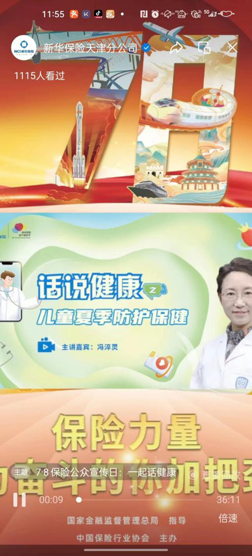 为进一步普及保险理念和保险知识,彰显保险的温暖与力量,新华保险天津分公司于7月8日9:00,通过分公司官方微信视频号开展“话说健康”主题直播活动。