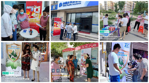 “7·8全国保险公众宣传日”期间,太平洋寿险天津分公司全辖通过张贴海报、播放保险行业宣传片等方式积极营造火热的宣传氛围。下辖河东、河西、静海、汉沽、塘沽等支公司走进社区、菜市场等公众生活区,多点位设立咨询服务站、派发宣传资料,围绕防范非法集资、反保险欺诈、整治代理退保、消费者权益保护、争做文明有礼天津人等方面,向社会公众普及金融保险知识,传播保险理念,发扬保险力量,提升公众的风险防范和金融安全意识。