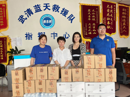 近日,受台风“杜苏芮”影响,京津冀灾情紧急,人保健康天津分公司银保渠道营业三部经理魏阳同志通过观看新闻得知“武清蓝天救援队”在涿州市东仙坡镇进行搜救救援任务中,因强度过大出现装备物资损失过多的消息后,组织第三营业部(中行团队)全体员工第一时间联系“蓝天救援队指挥中心”,了解涿州防汛救灾具体需求后,在2023年8月2开展了救援物资的筹备工作。8月3日中午第三营业部(中行团队)全体员工完成了爱心救援物资的紧急调拨及采购任务,捐赠物资包括“20把强光手电筒”及“牛奶、饮料、矿泉水”等110箱必需品,为抢险救灾救援队尽一份力量,帮助他们尽快抗洪成功。当日下午13:00,满载着我们对受灾同胞的牵挂与祝福救灾物资顺利送往涿州。