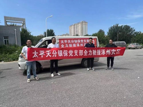 风雨同舟守望相助,洪水无情太平有爱。越是艰难越是向前,哪里有危险,哪里就能看到太平人寿党员和人民群众携手奋战的身影。天津分公司银保党支部逆行出征,同舟共“冀”,为防汛救灾工作贡献光热,为助力抗灾救援贡献太平力量。(太平人寿天津分公司)