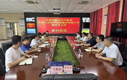 8月17日,人保财险天津市蓟州支公司与天津市蓟州区气象局签署战略合作协议,蓟州支公司总经理刘晓冬、天津市蓟州区气象局局长庄海雄代表双方签约。