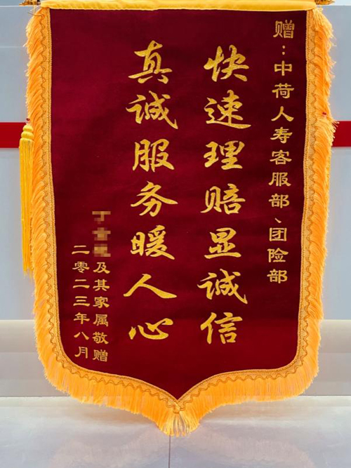近日,一面印有“快速理赔显诚信,真诚服务暖人心”的锦旗被送到了中荷人寿保险有限公司天津分公司,亲手递交到了理赔人员和团险工作人员的手中。在这面锦旗的背后,是中荷人寿努力为客户寻找赔付的理由,用精诚服务带体现着承诺的初心。