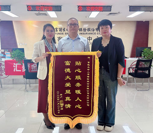 9月19日,Z先生委托业务员至富德生命人寿天津分公司柜面致谢并赠送锦旗,对富德生命人寿优质高效的理赔服务予以充分肯定。