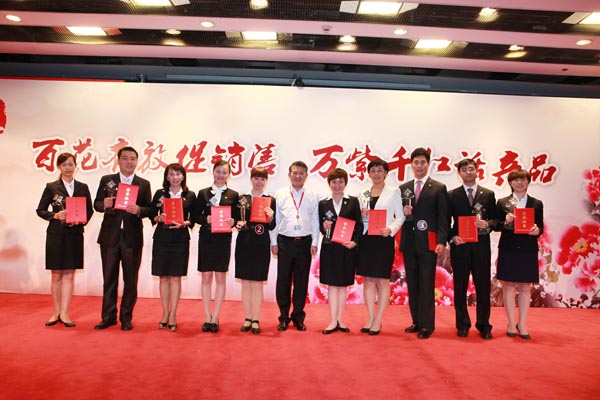 陈东升董事长与获奖的十大产品明星讲师合影照片