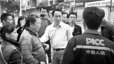 4月21日上午,中国人民保险集团公司董事长吴焰亲自将5000元赔款送到雅安市芦山县芦阳镇骆家营的客户骆瑞森手中,这是中国人保对芦山地震的第一笔赔款。