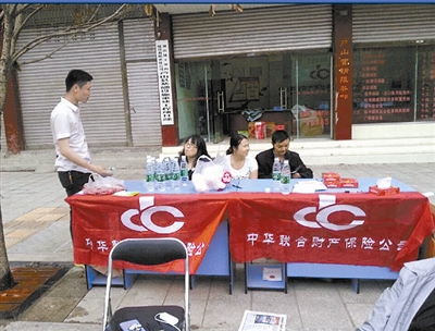 中华保险四川分公司在灾区多处设置抗震救灾快速理赔咨询点。