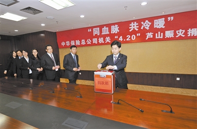 4月22日上午,中华控股和中华财险总公司机关均组织了抗震救灾捐款活动,200余名干部员工共捐助抗震救灾款项8万余元。各个分支机构也在积极组织募捐活动。下一步,中华保险将汇总全系统捐助款项,并将捐款统一捐赠至慈善机构。