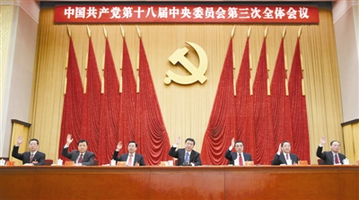 中共十八届三中全会在北京举行 中国共产党第十八届中央委员会第三次全体会议,于2013年11月9日至12日在北京举行。这是习近平、李克强、张德江、俞正声、刘云山、王岐山、张高丽等在主席台上。 新华社/图