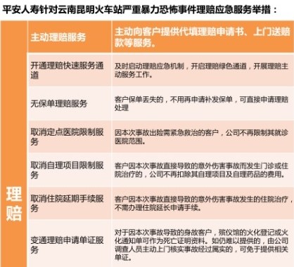 中国人民保险寿险云南省分公司高度重视,2日上午总经理室组织召开电话会议部署相关工作。一是成立以王倩总经理为组长,宋繁祥副总经理为副组长,综合部、业管客服部负责人,理赔岗、核保岗、电话客服岗、信息岗为成员的应急工作小组,负责统一指挥和处置工作。二是及时通知在昆各机构全体人员注意自身安全,尽量避免到人群密集处,通知各地州公司及时做好对员工的安全教育,通知各营业场所做好安全防范。三是迅速开展承保情况排查,做好理赔服务准备。核保岗、理赔岗及电话客服岗24小时在岗待命;各地州公司安排值班,随时做好客户报案处理和理赔服务。截止2日12时,尚未接到伤亡客户信息。四是要求应急工作小组成员及各部门负责人保持移动电话24小时开机,确保联系畅通。