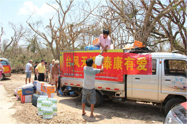 据了解,在此前的7月23日,受灾严重的海南文昌市翁田镇博文乡深坑沟村刚刚通车,仍在坚强自救的泰康人寿海南分公司与海南边防医院组成的联合爱心团队就第一时间携带着物资到达支援。作为灾后第一家到达该村救灾支援的企业,泰康人寿自发筹集、送去的饮用水、牛奶、泡面、食物、食用油、蚊香以及大量夏季衣物等一车物资及时分发给了灾区村民。