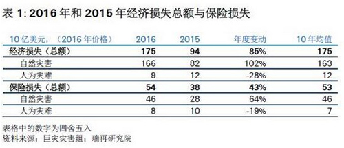 瑞再:2016年全球因灾害造成的保险损失达540亿美元