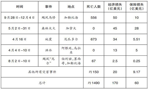 表2 2016年美洲(除美国外)前五大重大灾害事件