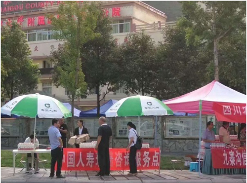中国人寿在九寨沟设立了咨询服务点,一边接受保险咨询,一边提供志愿服务。