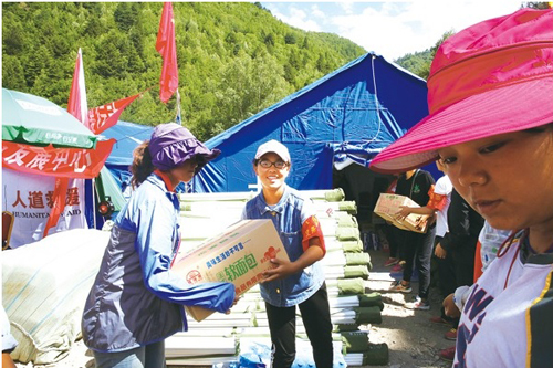 8月9日下午,保险业在灾区的理赔服务点纷纷成立,为撤离游客和当地灾民免费提供救援、物料设备、保险咨询等帮助。