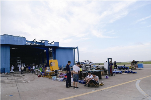 珠海九洲机场多架直升机在台风中严重受损,直升机仓库顶盖也被台风掀开。保险公司正在协助救援公司逐步查清受损情况。