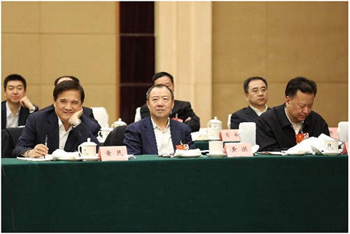 中国保监会副主席黄洪(中)。记者 史方舟/摄
