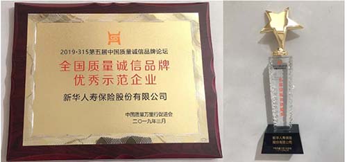 新华保险连续第四年荣获“3·15全国质量诚信品牌优秀示范企业” 和“五星级服务质量奖”