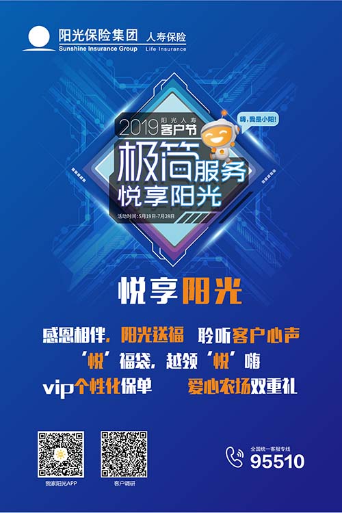 阳光人寿还将在全国开展“聆听客户心声”、“爱心农场双重礼”等特色活动,让客户在体验阳光服务的过程中,悦享极简美好生活。5月19日至7月28日,广大客户可登录阳光保险官方网站(www.sinosig.com)、下载“我家阳光”APP或咨询您身边的阳光保险工作人员了解更多资讯,参与本届客户节活动。