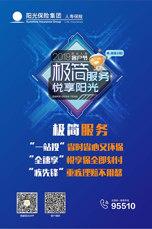 5月19日,以“极简服务·悦享阳光”为主题的2019阳光人寿客户节在河南郑州拉开帷幕。开幕仪式上,阳光人寿正式对外推出了“一站投”、“全速享”和“疾”先锋三大特色“极简”服务,打造“极简”服务品牌。阳光人寿“极简”服务将借助人工智能等现代科技手段,全面优化客户服务环节,升级服务流程,创新服务举措,让“保险”服务更加简单、便捷。