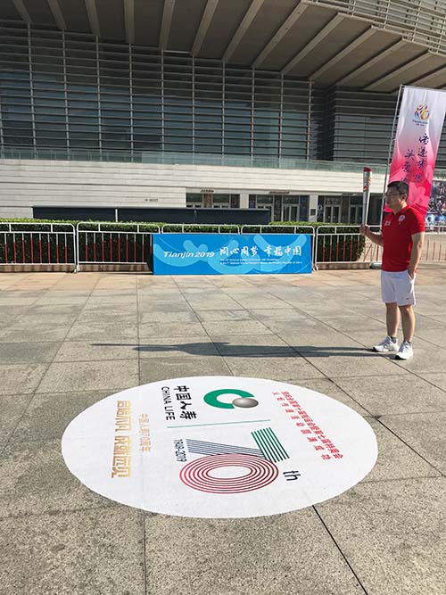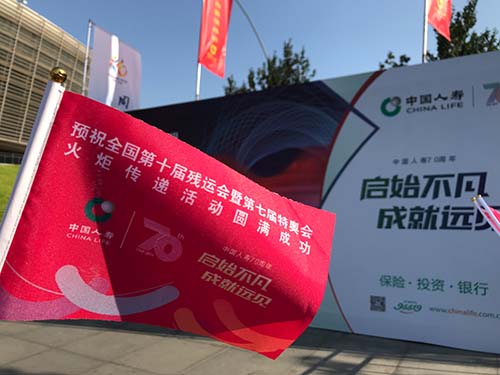 8月18日上午8:30分,全国第十届残运会暨第七届特奥会圣火采集暨火炬传递起跑仪式在天津文化中心广场隆重举行!在仪式现场,运动会口号“同心同梦幸福中国”与中国人寿“启始不凡 成就远见”70周年主题元素完美结合,气氛热烈,盛况空前!天津地区各大主流媒体全程直播。总公司詹忠副总裁,相关部门负责人李英建总经理,天津公司刘凤基总经理,赵宏伟副总经理出席活动。仪式后公司领导与国家残联周长奎主席,王梅梅理事长,天津市政府曹小红副市长及组委会相关领导会见。中国人寿天津市武清区支公司蔡静总经理代表公司作为第6棒火炬手参与传递。
