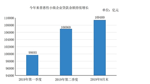 截至2019年8月末,全国普惠型小微企业贷款余额10.94万亿元,较年初增长了16.9%,显著高于同期各项贷款增速。信用保险和保证保险通过融资增信,帮助174.2万家企业获得银行融资3719亿元。普惠型小微企业贷款户数2047.51万户,较年初增加了324.27万户。