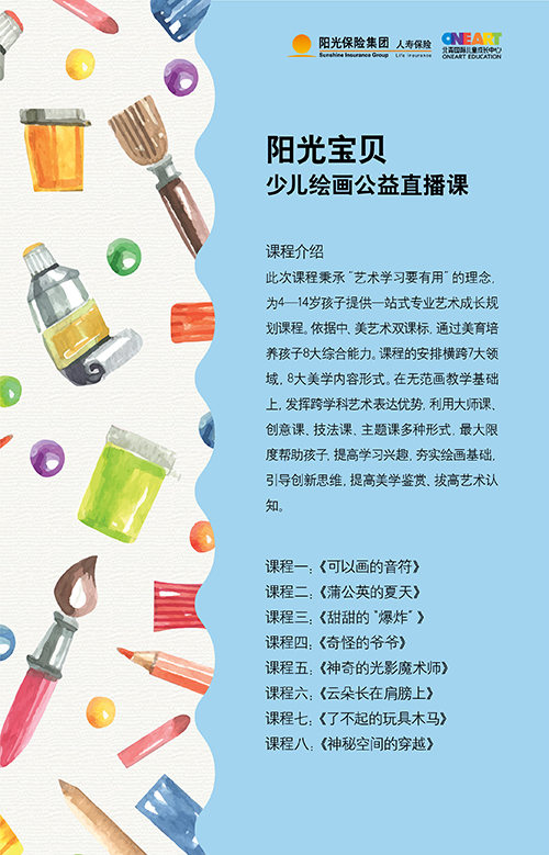 日前,由阳光人寿联合北京青年国际文化艺术协会共同主办、北青国际儿童艺术中心承办的“阳光宝贝”全国少儿绘画系列活动正式启动。在为期两个月的活动中,全国3-15周岁的青少年儿童,可通过参与在线艺术沙龙系列课程学习,以及报名“阳光宝贝”全国少儿绘画大赛的方式,聆听艺术名家授课、点评,并有机会受邀前往北京参加现场颁奖活动。