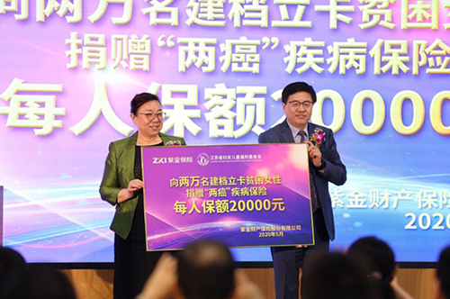 开幕仪式上,紫金保险向江苏省妇女儿童福利基金会捐赠女性安康疾病保险。这是公司自去年首届客服节以来,第二次向建档立卡贫困妇女捐赠保险,本次捐赠涵盖江苏省内6个地市近2万名贫困妇女,每人保险保障2万元,捐赠总保额4亿元。