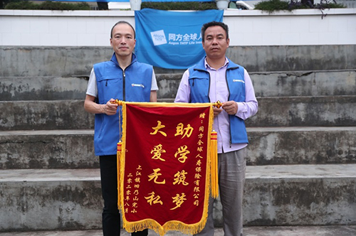 同方全球人寿志愿者的到访,让旧乃山完小的石校长感慨万千:“对于我们旧乃山完小的孩子们来说,今天是一个的特殊日子,因为帮助我们九年的同方全球人寿叔叔阿姨们又来看我们了。感谢同方全球人寿九年如一日的支持,关注我们一步步的发展到现在。”在师生大会上,石校长向本次志愿者回访的领队朱庆国先生送上了锦旗,感谢公司长期以来对学校的大力支持。