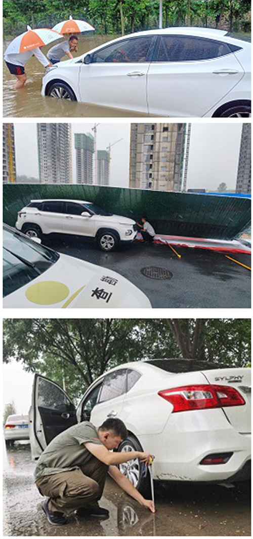 由于郑州地区道路积水严重,公共交通陷入瘫痪,查勘难度较大,但雨势稍有减弱,阳光财险查勘员就立即赶赴事故现场,为客户进行查勘理赔。