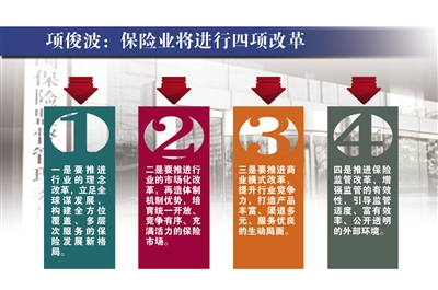 项俊波强调,要促进保险业持续健康发展,只有通过改革。他提出在四个方面进行改革: