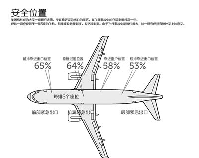 首先,搞清楚最近的紧急出口位置。上飞机后,数一数自己的座位与出口之间隔着几排。这样,即使机舱内烟雾弥漫,也可以摸着椅背找到出口。