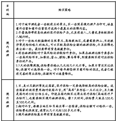 自助旅行是多数人喜欢的旅游方式,因为不用被旅行社安排的紧密行程以及购物活动场所等限制,可以完全自由、放松地与家人、朋友们一起享受快乐的旅程。但缺陷是周边环境不熟悉,容易发生一些意外事故。所以,买份保险显得尤为重要(相关保险规划见右表)。