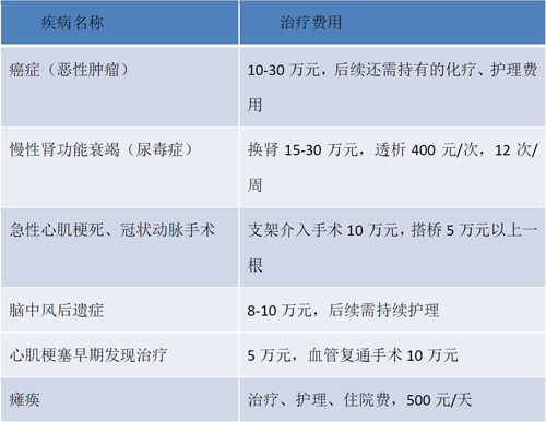 表1:几类常见重大疾病的治疗费用