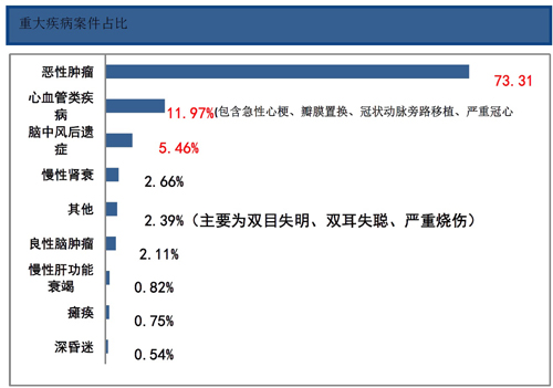 图1:2015年重疾案件理赔情况——病种分布