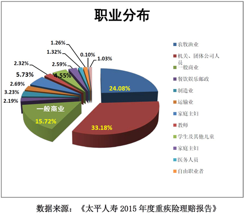 图3:重大疾病理赔案例中的人群职业分布情况