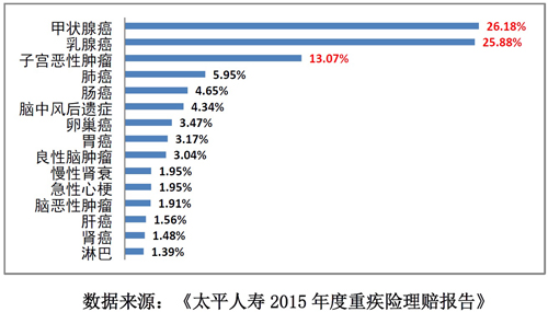 图4:15种出险率最高的重大疾病(女性 )