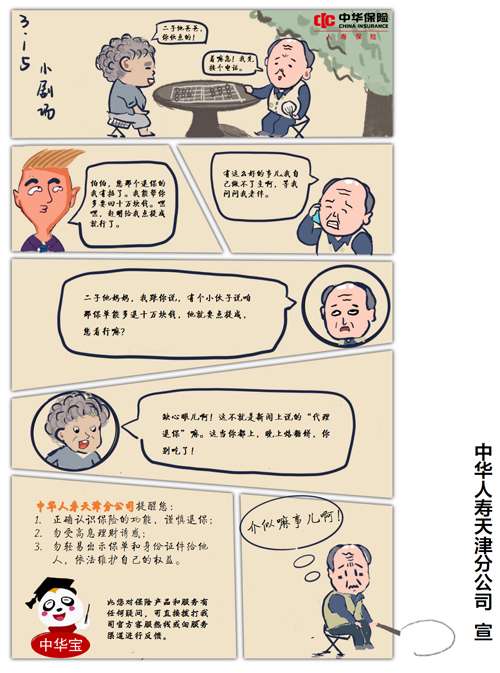 中华人寿天津分公司3.15手绘小剧场:代理退保勿轻信